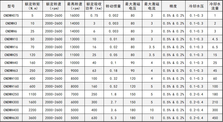 高速电涡流测功机技术参数